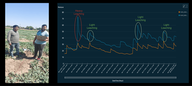 In the first irrigation, the farmer applied water through his will, and 60% of the water with the nutrients was leached by the morning. After explaining this to the farmer, he understood the problem and started using our recommendation. Since then, we have regulated the water supply and amount of stress.