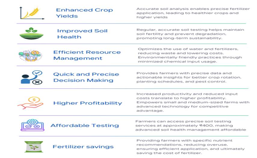 - Customized Fertilizer Use: Avoids blanket NPK application. Reduces input costs and increases yield.